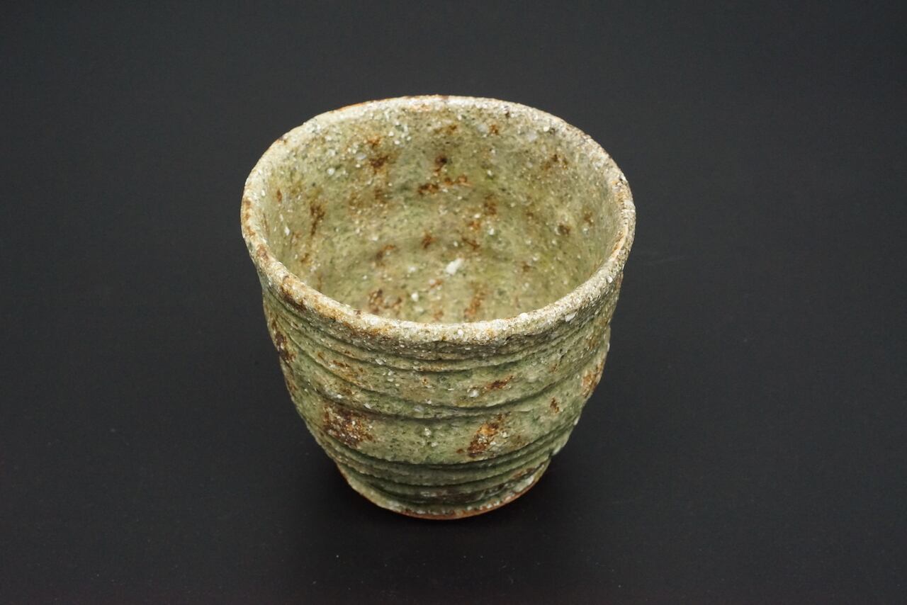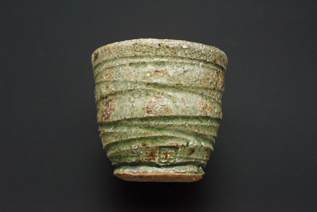 底にたまった灰釉が融けて綺麗なグリーン色になっています。